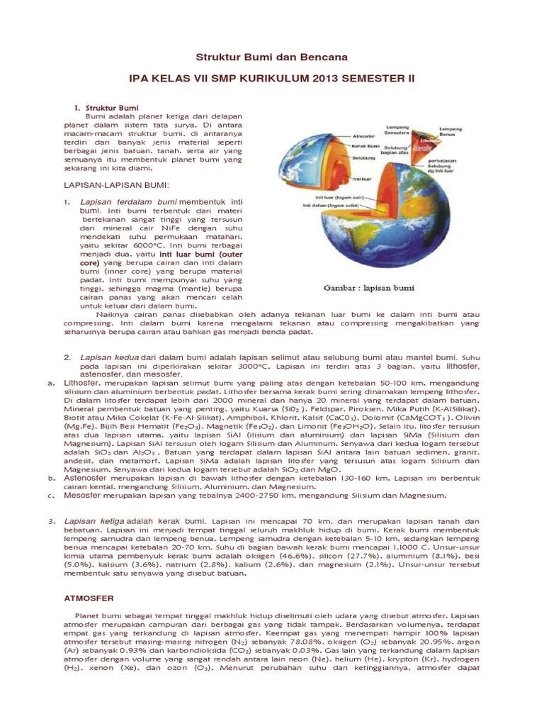 Latihan soal ipa materi lapisan bumi kelas 7 smp kurikulum 2013. Ilmupengetahuanalam•kelasviismp/mts•semester2 smp/mts kelas viisemester 2 isbn: Struktur internal bumi secara umum dibagi menjadi tiga bagian yaitu kerak bumi yang merupakan lapisan paling luar, mantel bumi, dan inti bumi. Konsep ipa sesuai kompetensi dasar yang diharapkan dalam kurikulum 2013. Atmosfer berasal dari 2 kata yunani, yakni atmos yang berarti uap dan sphaira yang berarti lapisan.